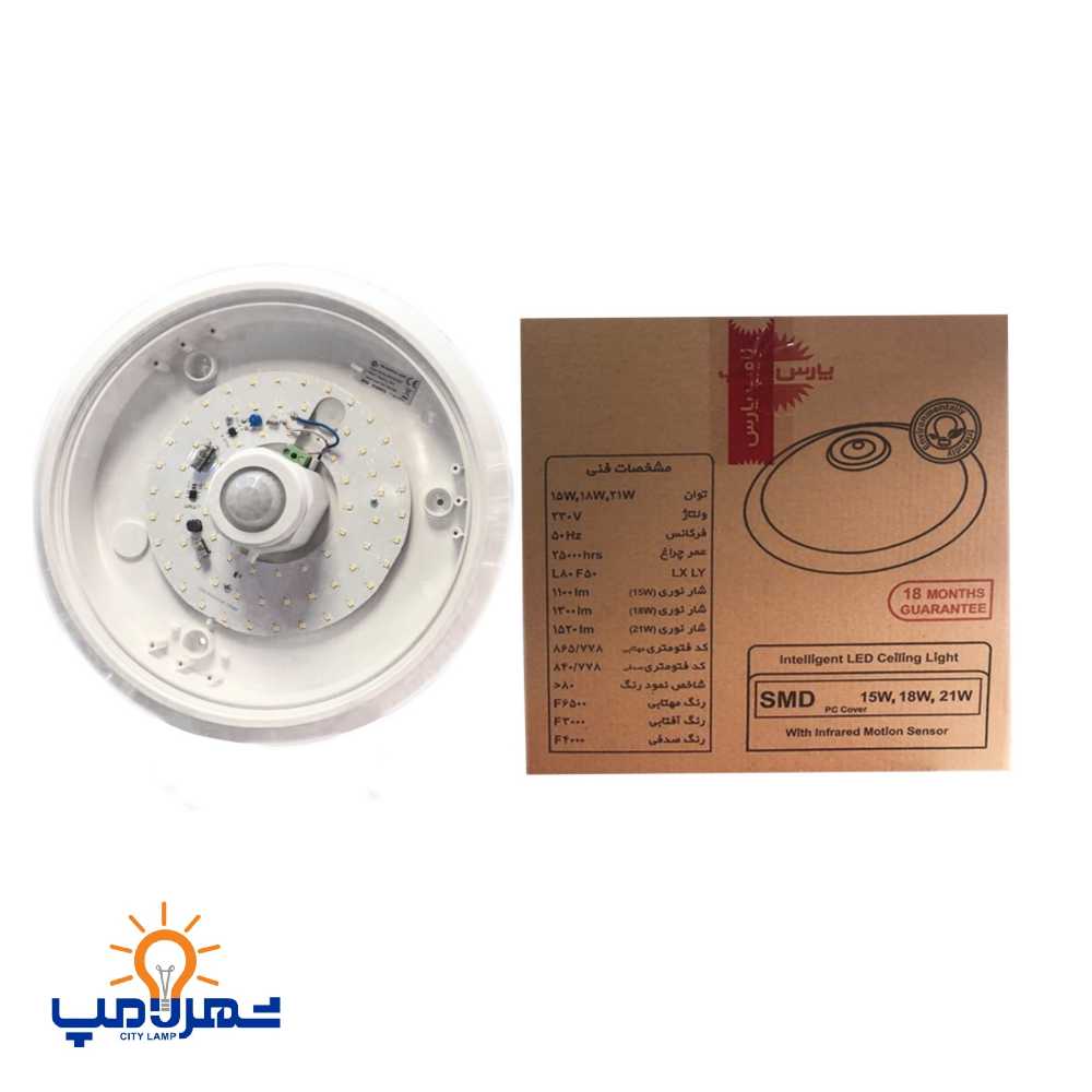 چراغ سقفی سنسور دار روکار 18 وات دایره هوشمند پارس شهاب